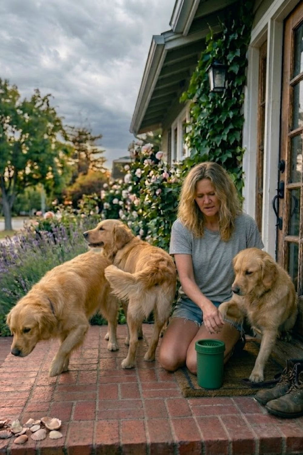 Every time I take my three Golden Retrievers for a walk, I sign up for a scrubbing session.